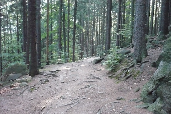 Deszczowo... w Marciszowie noszenie roweru, nie znalazłam innego przejścia.